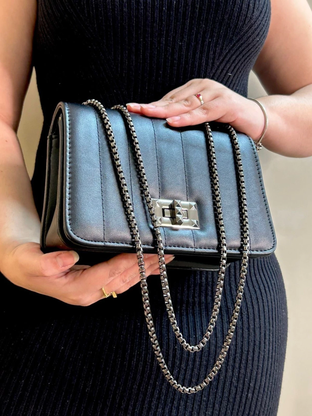 Eleve seu visual com esta bolsa que une funcionalidade e um toque clássico de luxo. Um acessório indispensável para mulheres que valorizam beleza e praticidade.