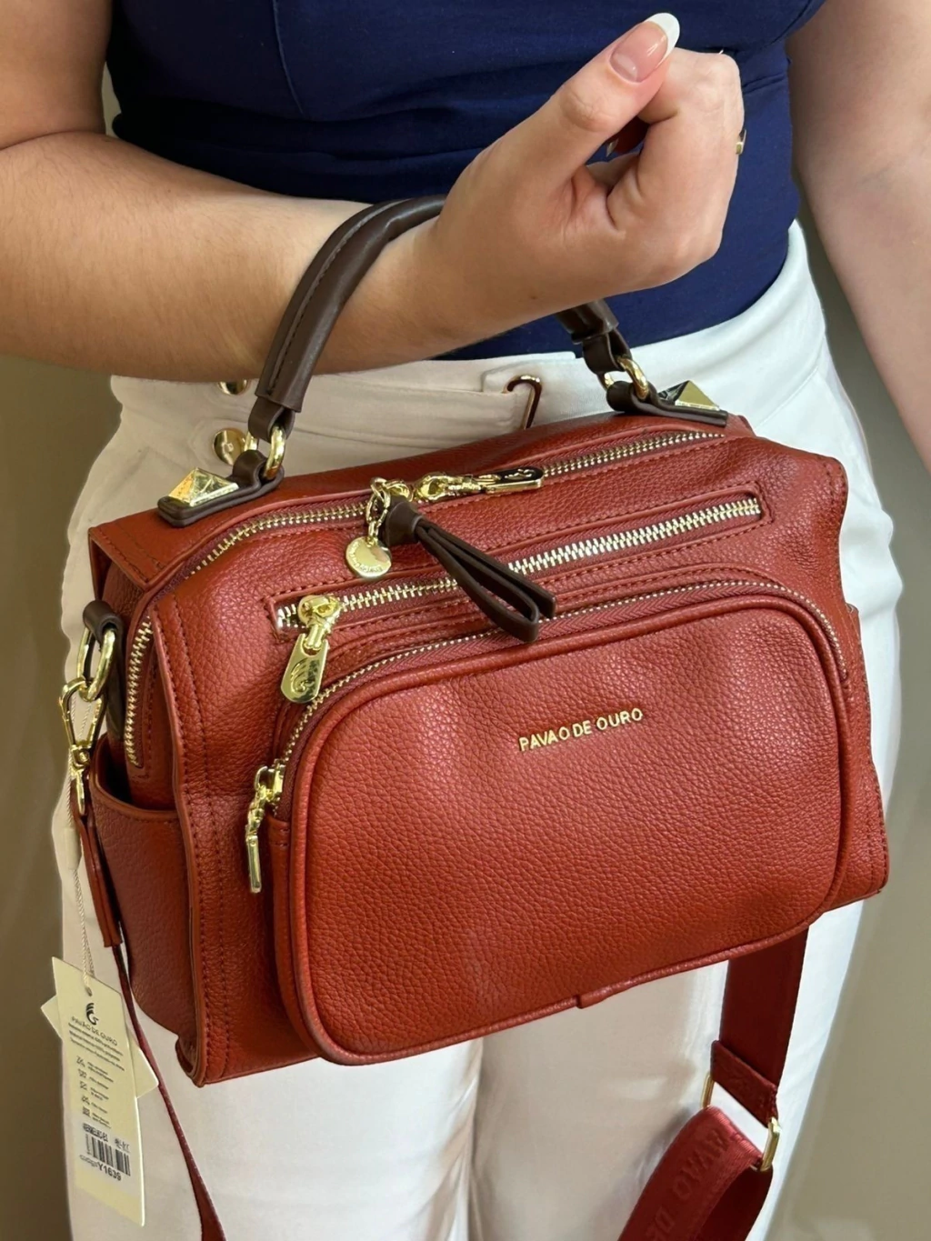 Descubra a sofisticação da Bolsa Média Baúzinho Pavão de Ouro, perfeita para quem busca estilo e praticidade no dia a dia. Seu design clássico, com repartições internas e forro exclusivo, garante a organização dos seus pertences com muito charme.
